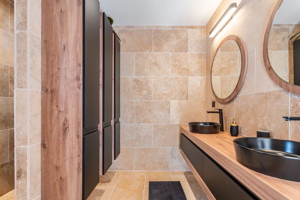 - Placez les dalles de travertin sur la colle KARMAN MaxiFlex fraîche en les pressant fermement.